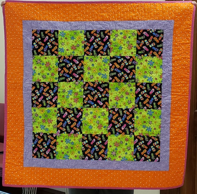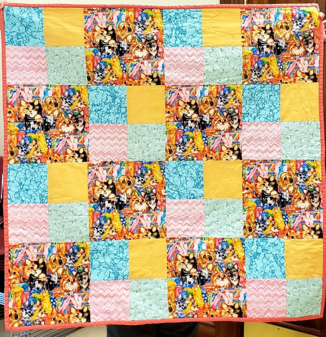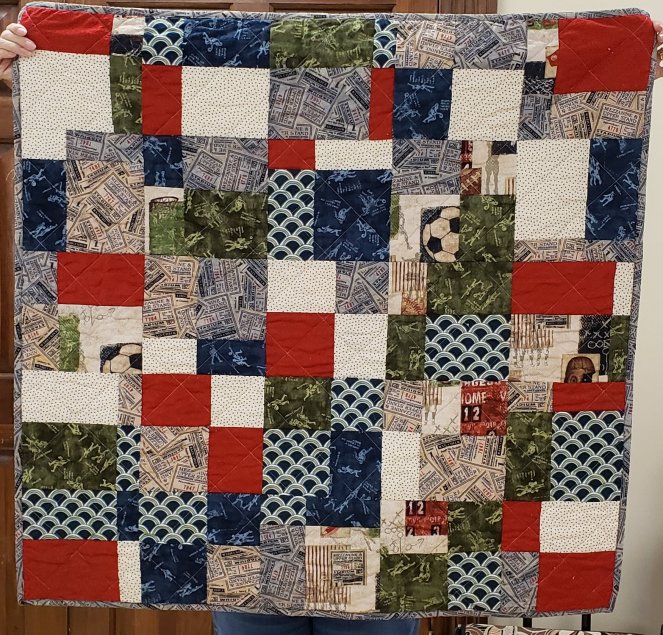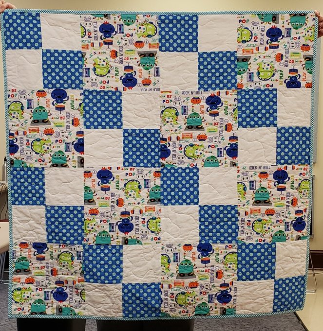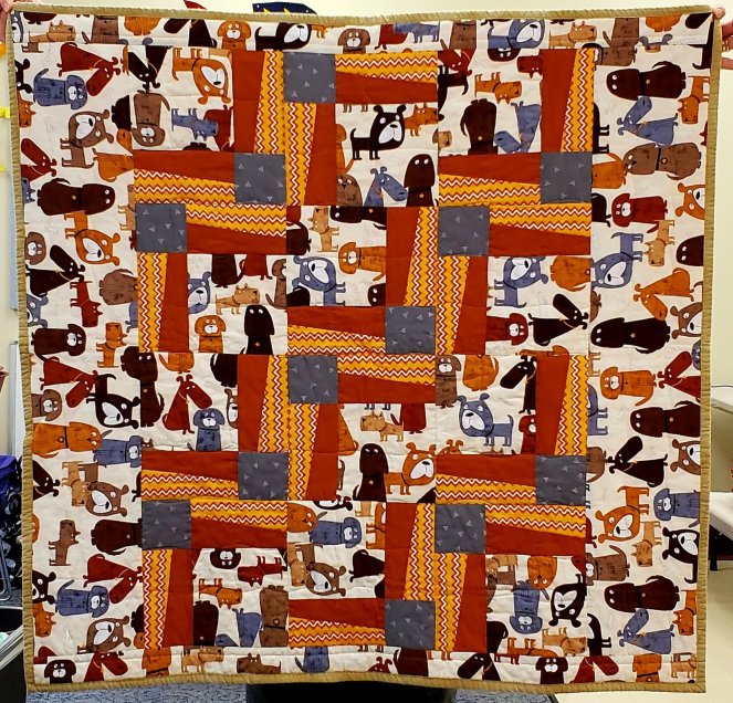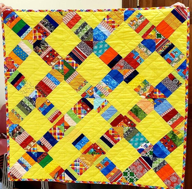 Lesley, one of our satellite quilters up in New Hampshire, sent TWO boxes of quilts and quilt tops! Here are 17 of the ones turned in this month.