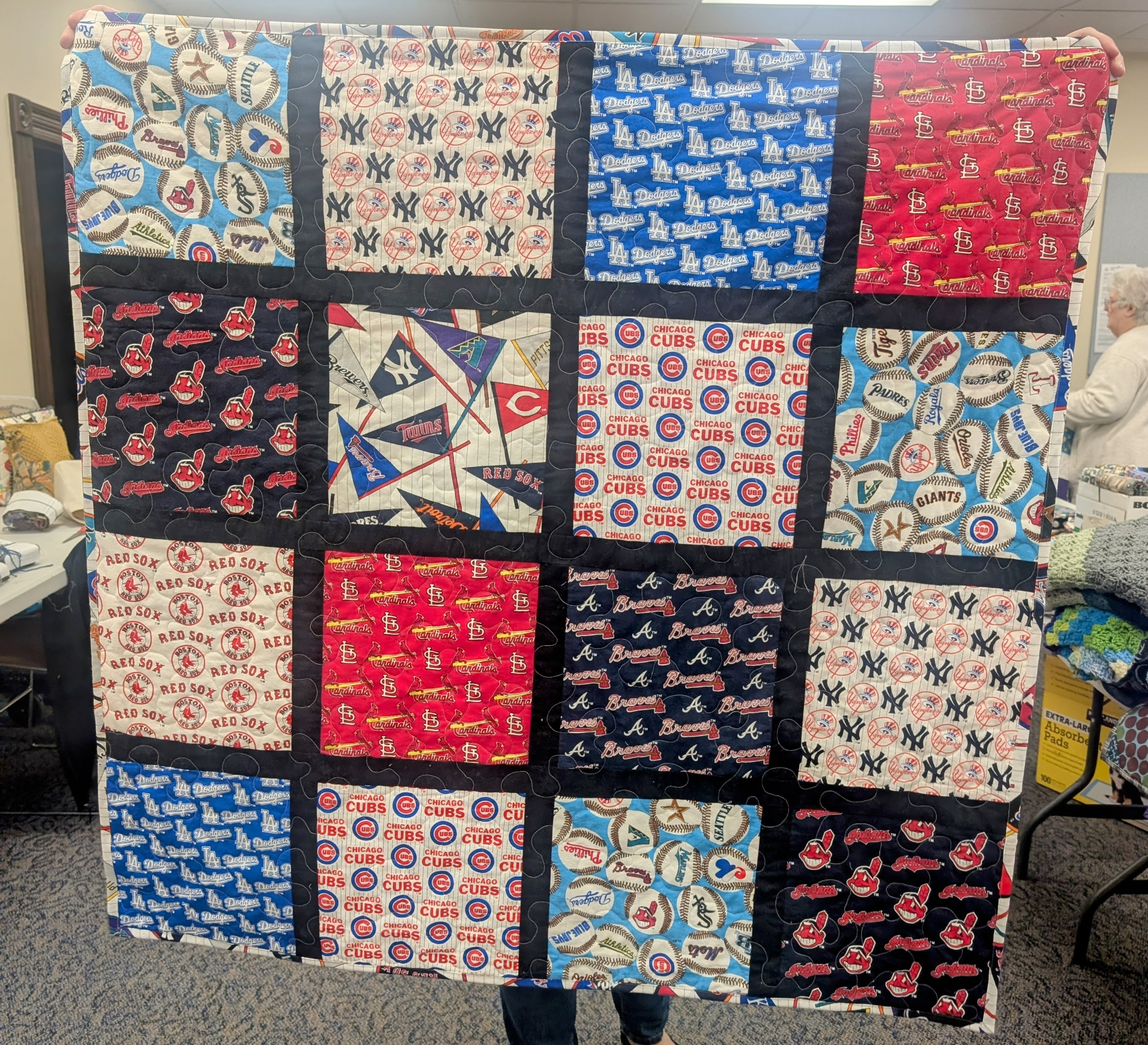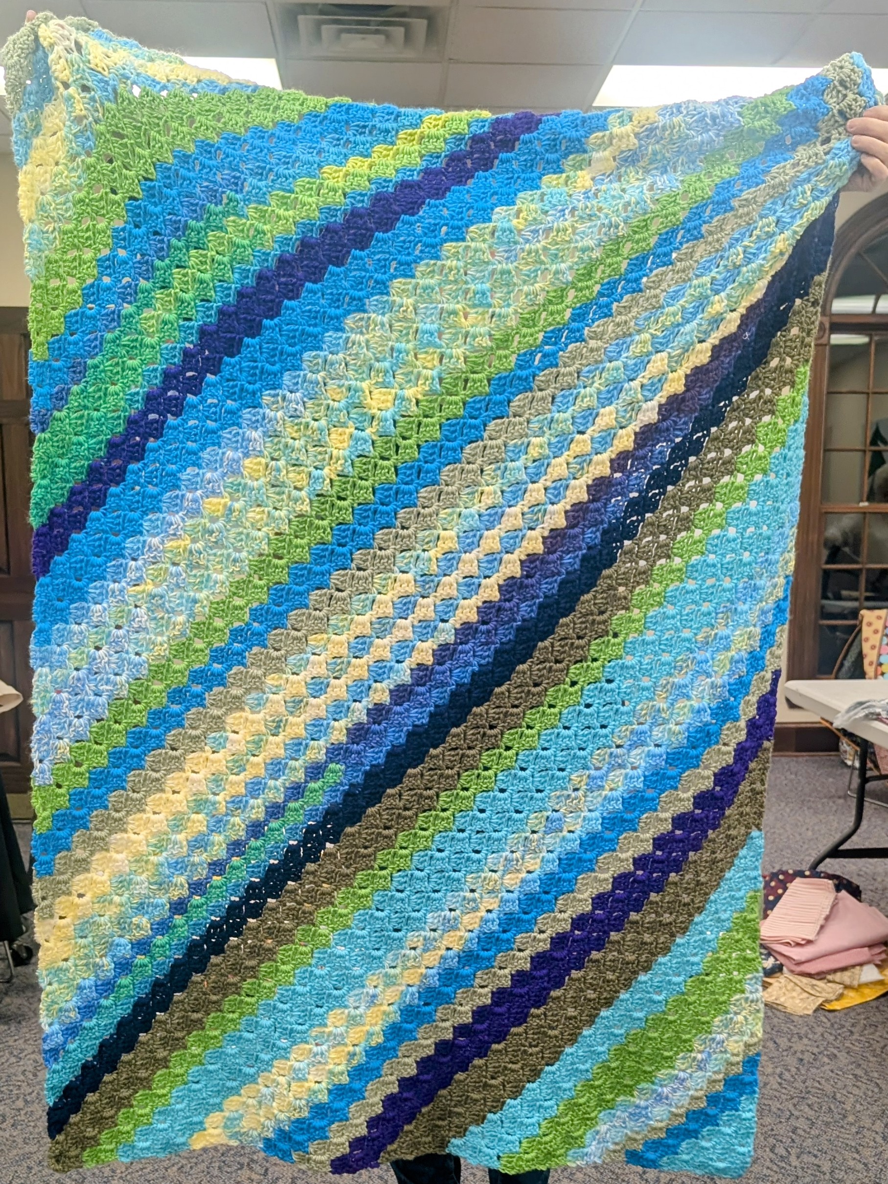 Hello! We had a fantastic session this month filled with plenty of shopping and sharing. 🙂 We also donated 28 beautiful quilts and afghans to the Cincinnati Ronald McDonald House. Check them out!